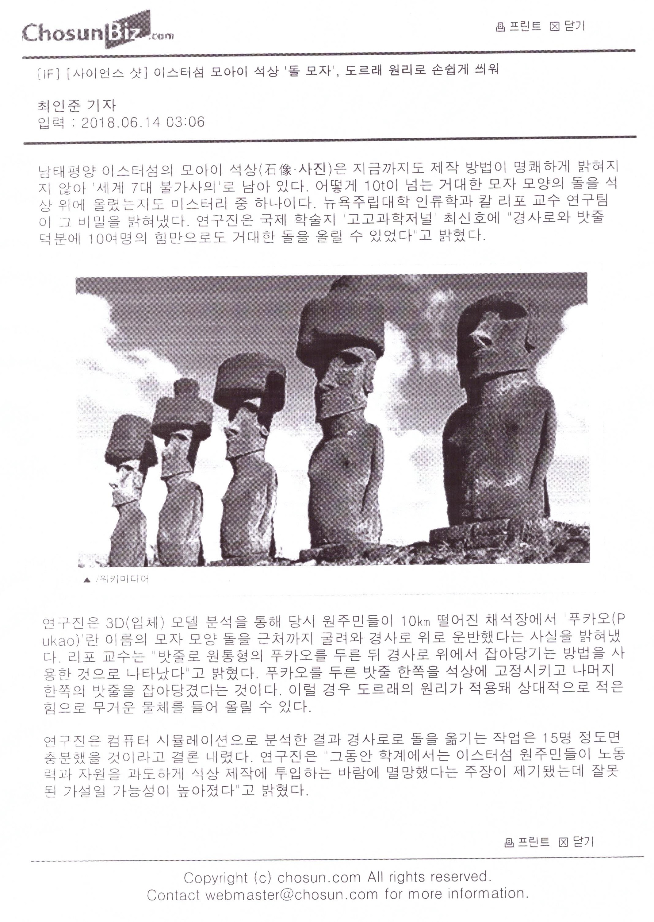 관리자 > [복사본] 언론자료 > (조선일보) 이스터섬 모아이 석상 '돌 모자'의 비밀